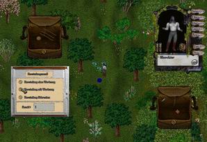 Wir suchen uns erstmal alle Dinge, die in dem Rezept stehen, zusammen. Dann legen wir eine der Ressourcen vor uns auf den Boden, tippen #h ein, drücken Enter und machen einen Doppelklick auf die vor uns liegende Ressource. Sie färbt sich nun blau und es öffnen sich zwei Dinge. |